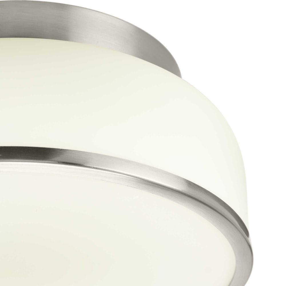 Graceful curves and bold angles combine to create a softly structured look in Parkhurst. An airy frame coated in soft brushed nickel defines the form and delivers unobstructed layers of light though etched glass shades. The visual appeal of the flush mount will offer a subtle and elegant silhouette over home theaters, bathrooms, or bedrooms in new traditional and contemporary interiors.