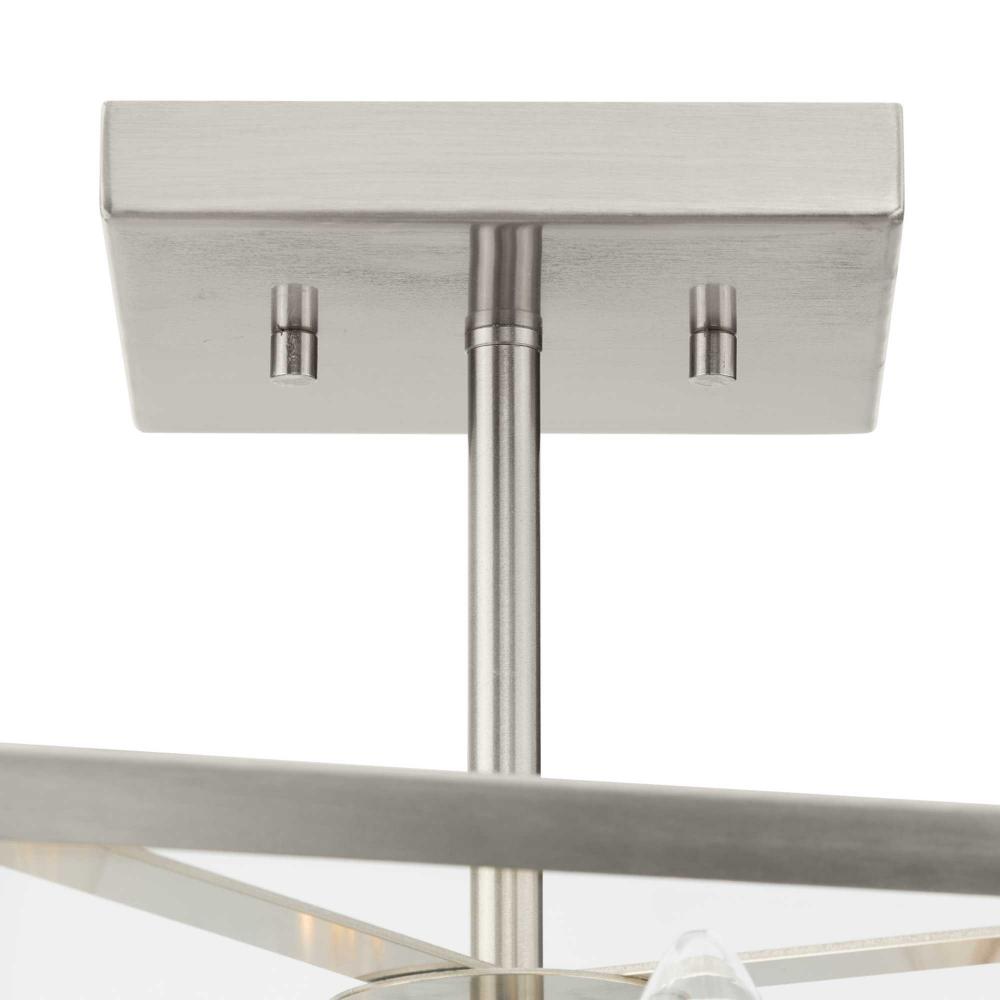 The Hillcrest Semi-Flush Light interprets the traditional carriage light for the modern age, giving it a fresh update with a refined angular silhouette. A classic candelabra base is suspended within a clear beveled glass frame.Clear illumination is cast from its airy design.