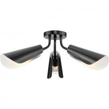Cornett trumpets its arrival on the scene with a blending of timeless modern design. The Close-to-Ceiling fixture features dynamic angles finished in Brushed Nickel, offering a dramatic counterpoint to the softly sculpted curves of the matching metal reflector shades.Light is directed out and downwards from its unique, curved construction.