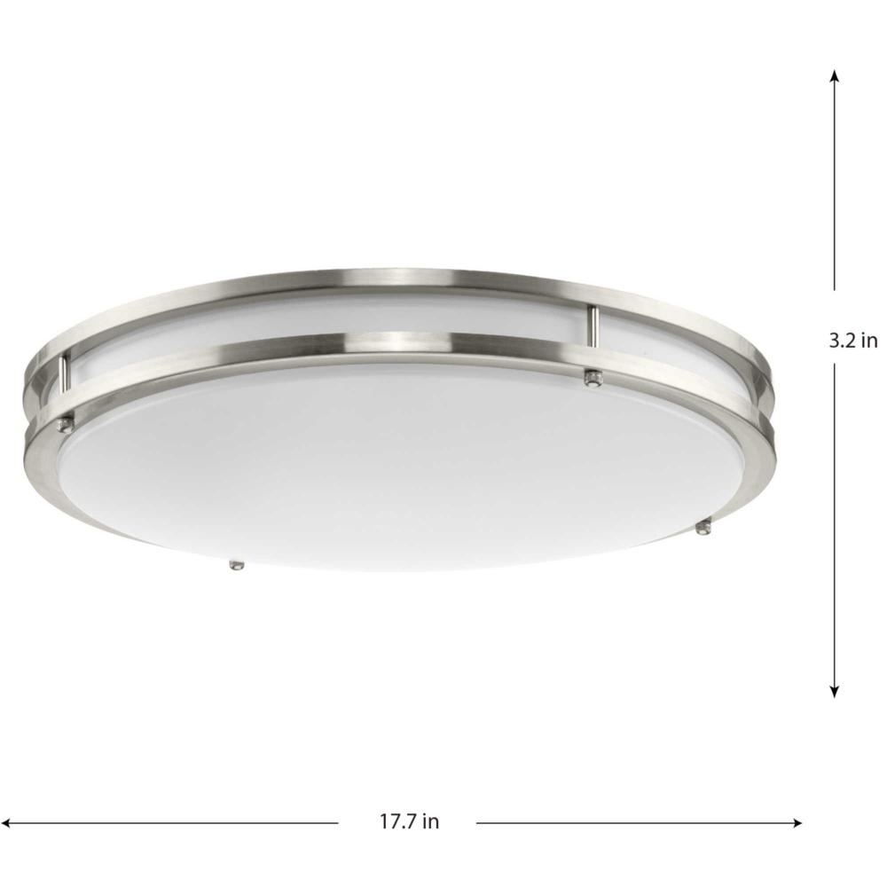 The Abide Integrated LED Large Round Flush Mount Light is precision crafted for contemporary settings. Sleek Brushed Nickel circular bands hold a white acrylic diffuser concealing its 5 CCT selectable (2700K, 3000K, 3500K, 4000K and 5000K) dimmable LED light source.