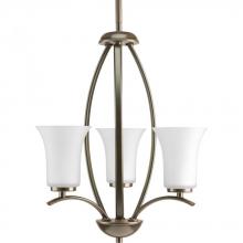 Gleeful simplicity defines the Joy Collection. Refreshing and fashionable, arcing forms of metal and fluted glass shades are enhanced by a classic Brushed Nickel finish. This three-light foyer fixture with a truly transitional style is ideal for a variety of interior spaces, including kitchens, dining areas and living rooms.