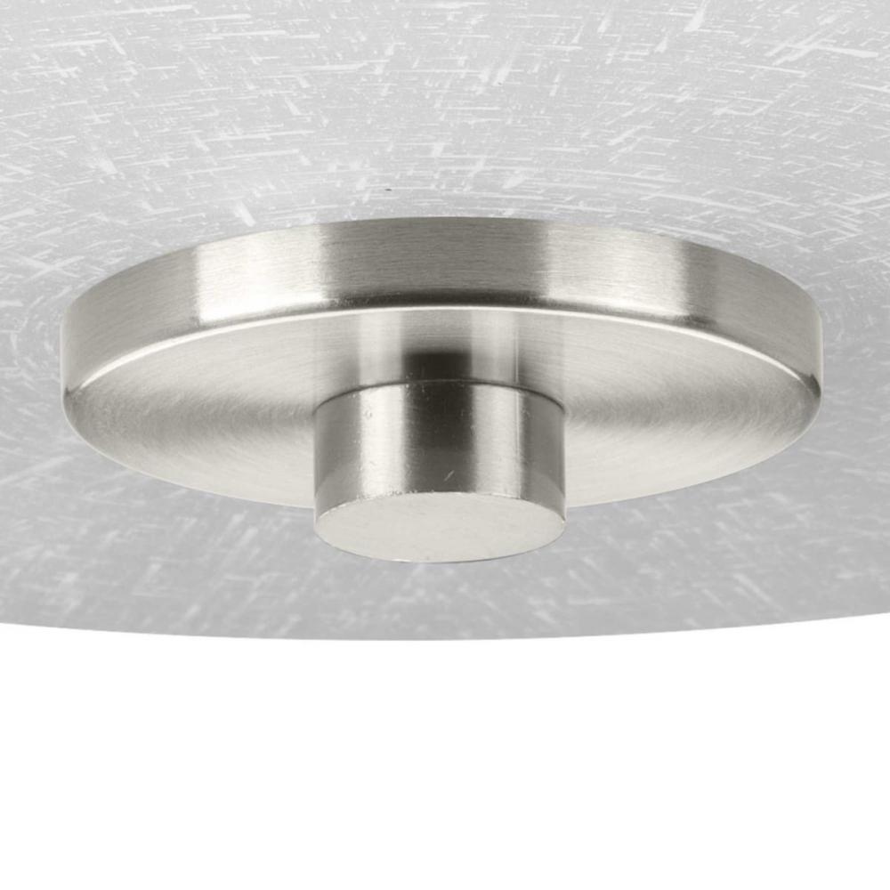 Brushed Nickel finish.;Sophisticated, modern urban lifestyle.;Textured white linen glass with a crisp, clear edge accent strip.;Glass shades feature crisp clear edge accent.
