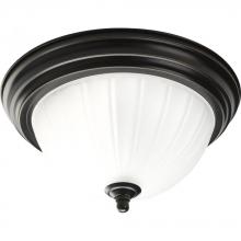 One-light close-to-ceiling with etched ribbed melon glass with center lock up in White finish.