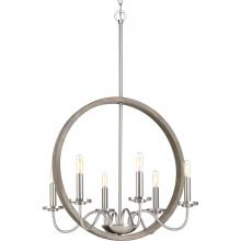 Features updated designs that honor the charm of early American styling;Dramatic circular frame offers a stylish perch for graceful candelabra lights;Dual tone finish combination is Antique Bronze with hand painted weather oak accents;Uses six 60 watt max.