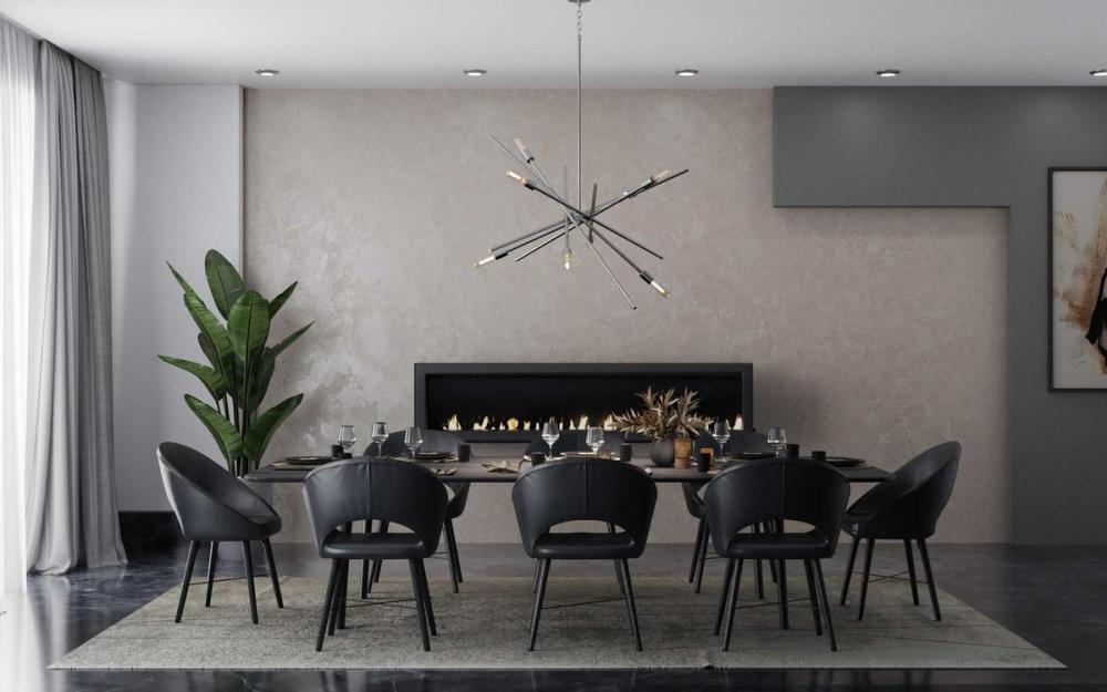 An iconic fixture, Astra features an organic, asymmetrical design. Ideal for dining room settings or entryways, these space-aged inspired pieces are so versatile they can be incorporated into a variety of interiors. Six-Light Chandelier. Brushed Nickel finish.