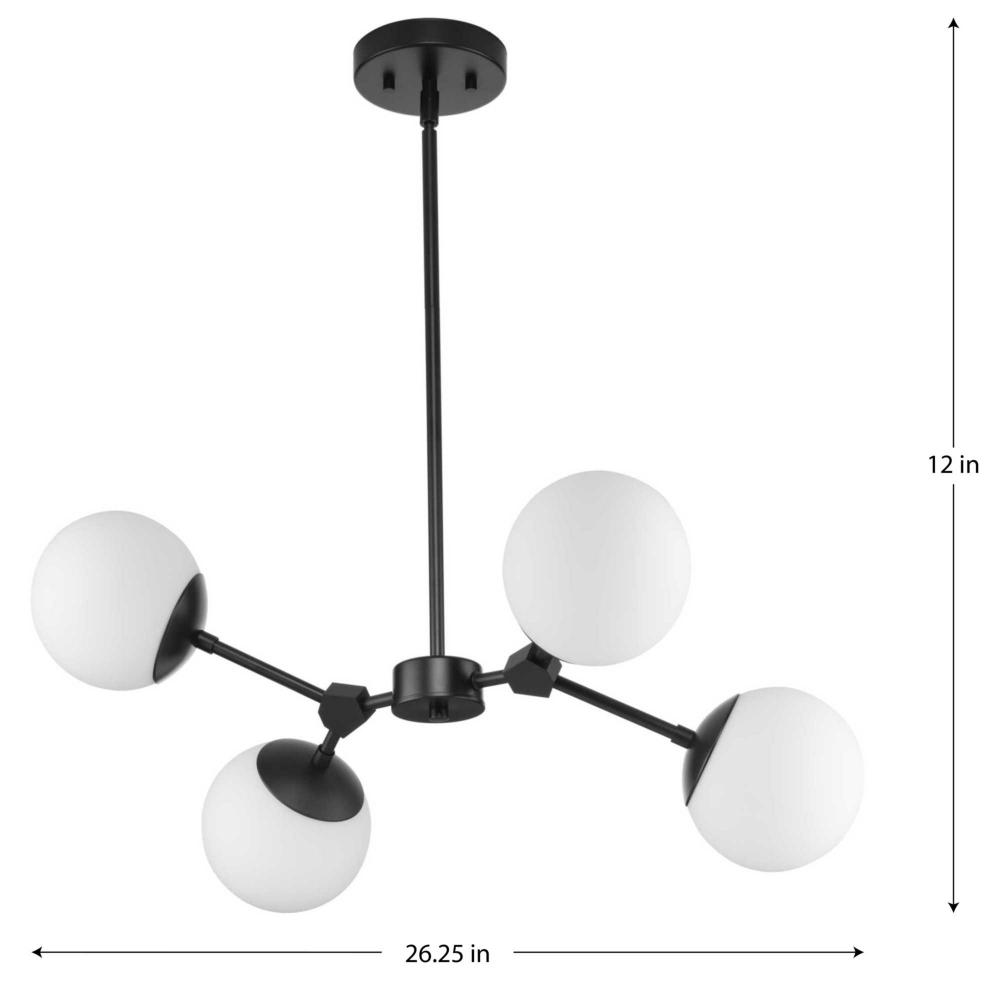 Modern and organic inspirations elegantly meld together in Haas. A bold linear frame branches out to embrace smoothly etched opal glass globes that imbue halls, foyer, kitchens, and breakfast nooks with soft illumination, and fits beautifully into mid-century modern and contemporary settings. This fixture is part of the Progress Lighting Design Series, a lighting collection offering fashionable styles and affordable luxury lighting for the home.