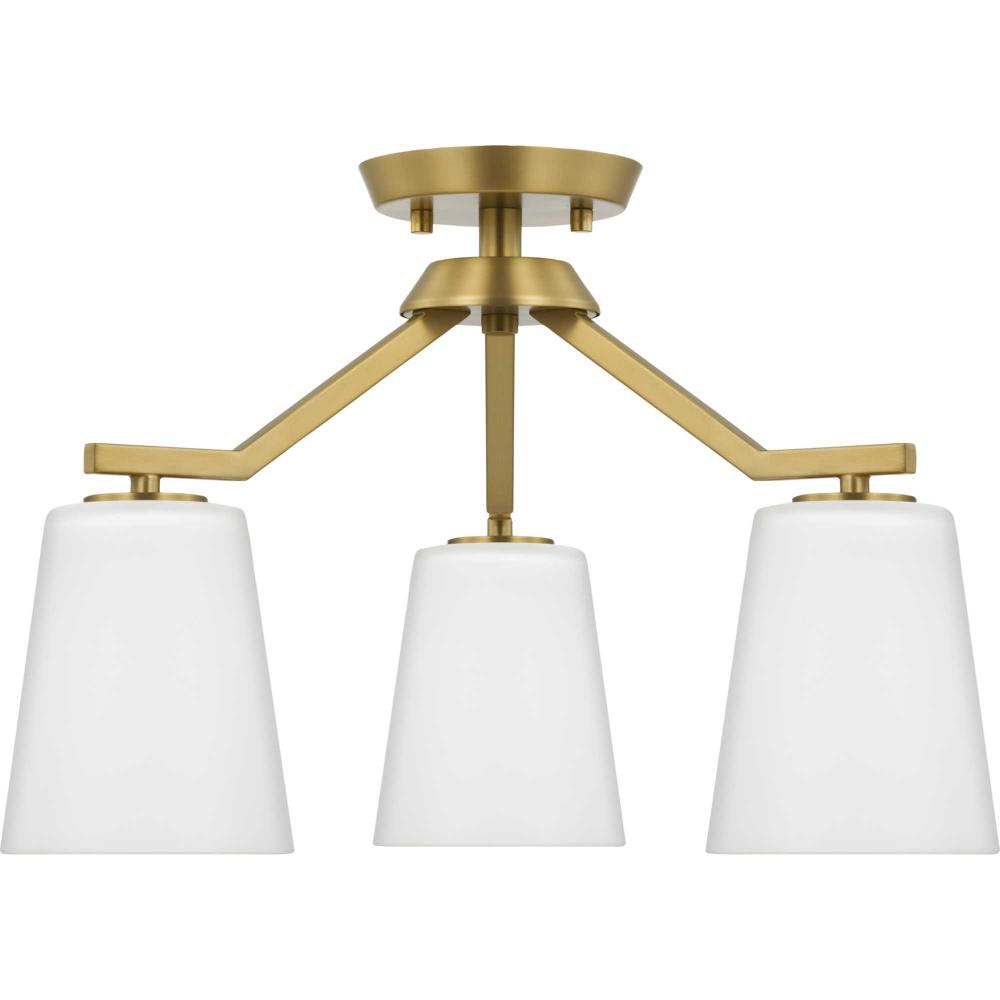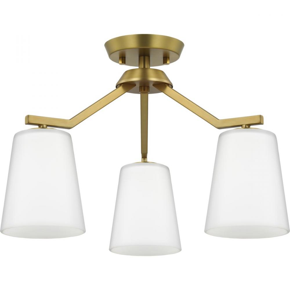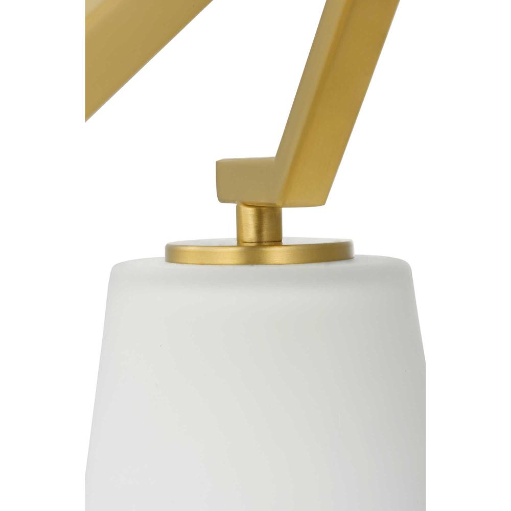 A lovely brushed gold frame define the fixture's distinct, angular silhouette