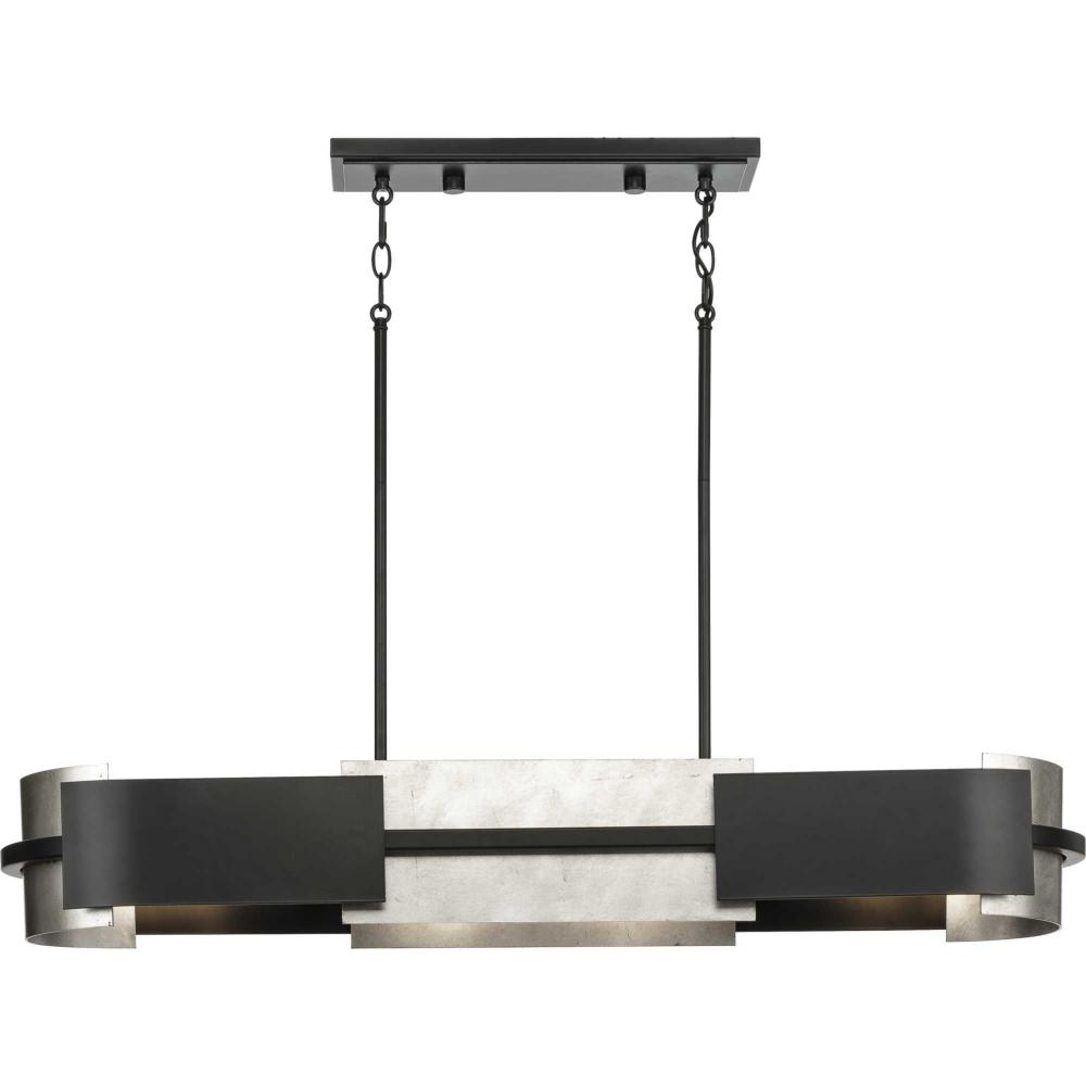 Raise the bar on contemporary design with Lowery. Layered rectangular shields coated in a matte black iron finish are artistically combined with distressed antique silver leaf panels against a black frame. Light sources glowing from inside the structure cast a shimmering reflective illumination that highlights the beautiful contrast between light and dark. Lowery delivers a stately ambient light to dining rooms, bedrooms and living rooms in luxe industrial, contemporary and rustic modern settings. This fixture is part of the Progress Lighting Design Series, a lighting collection offering fashionable styles and affordable luxury lighting for the home.