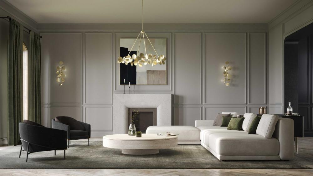 Natural, whimsical leaves and sophisticated lines fits beautifully in transitional, luxe, and modern organic rooms