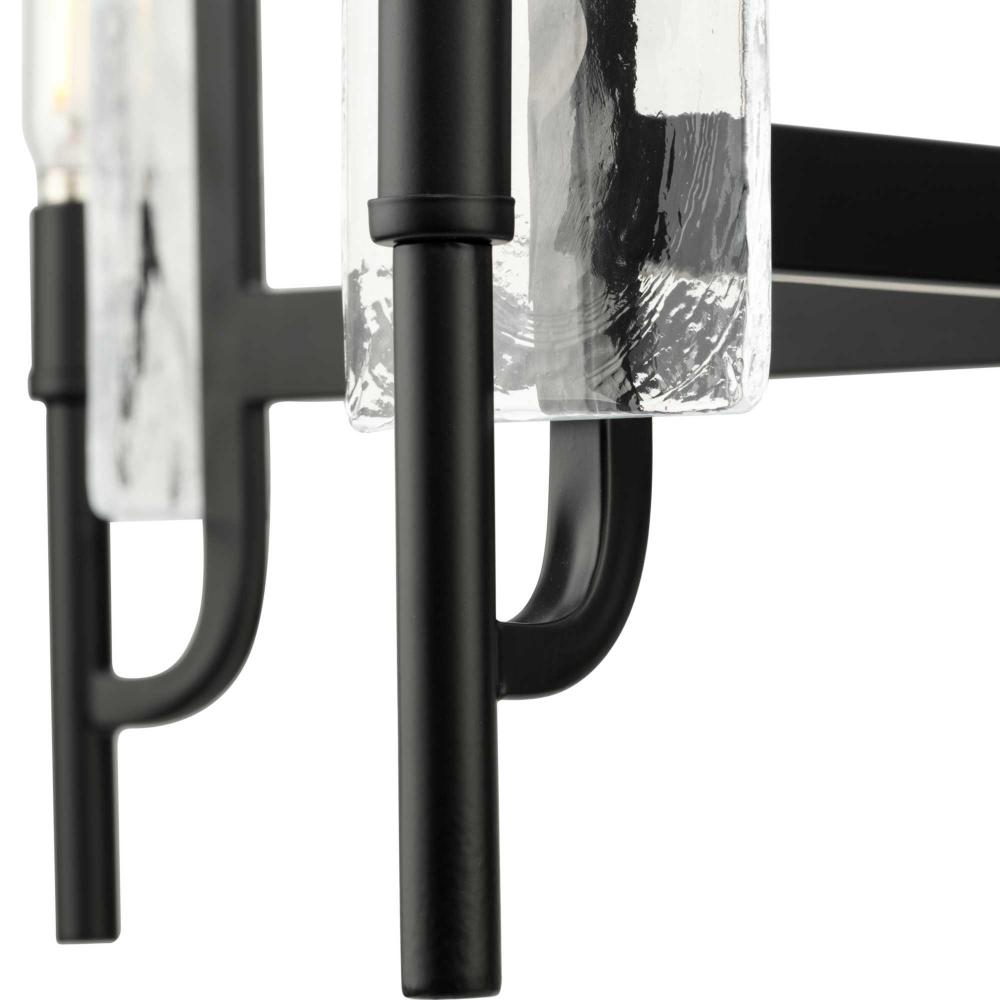 Indulge your artistic sensibility with luxurious lighting from the Rivera Collection. Softly filtered illumination through an icy display creates an otherworldly effect. Linear segments in rich, deep black tones frame billets of handcrafted, clear textured glass in a modern craftsman-inspired design.This fixture is part of the Progress Lighting Design Series, a lighting collection offering fashionable styles and affordable luxury lighting for the home.
