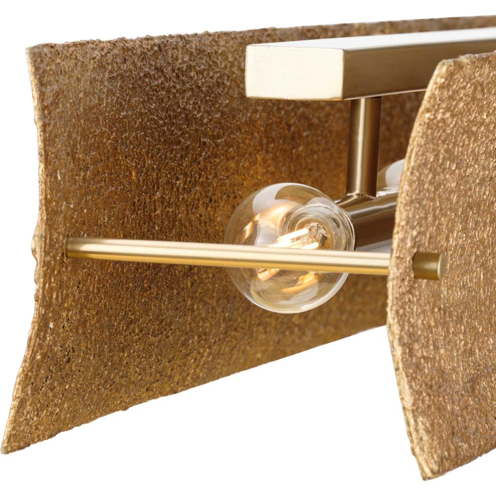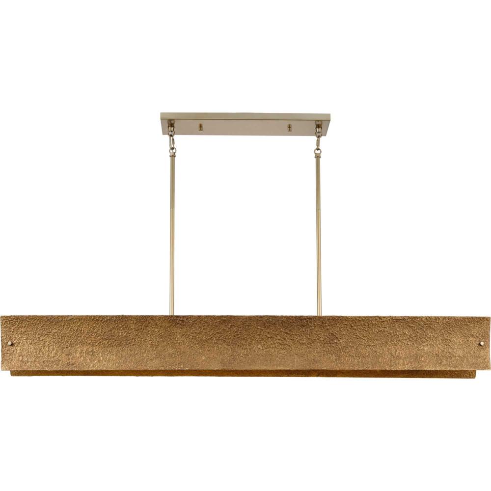 The Lusail Collection showcases a sensuous texture that brings forward a luxurious appearance. Rustic sensibility contrasts beautifully with the sleek golden elements that form the modernist frame.This fixture is part of the Progress Lighting Design Series, a lighting collection offering fashionable styles and affordable luxury lighting for the home.