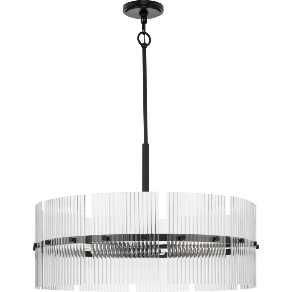 The Seville Collection ensconces light within a translucent design. A series of finely ridged architectural glass elements envelop a central frame finished in Matte Black to diffuse an ambient glow throughout the room. This fixture is part of the Progress Lighting Design Series, a lighting collection offering fashionable styles and luxury lighting for the home.
