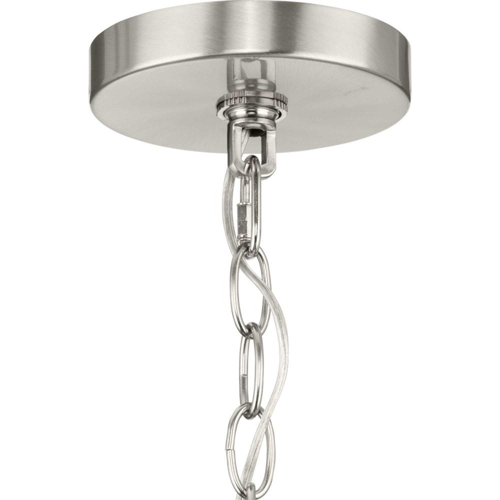 A Brushed Nickel finish emphasizes the fixture's lively design