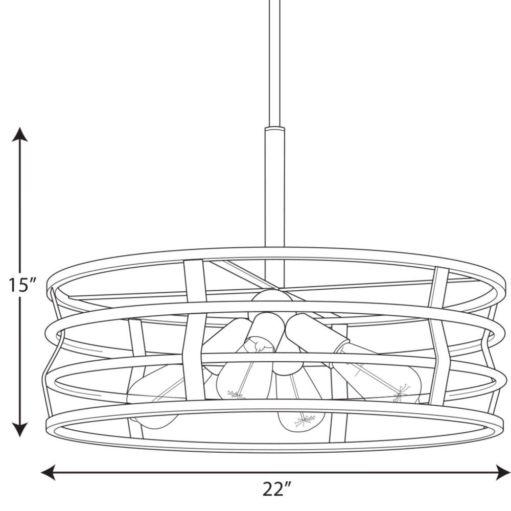 Graphite finish.;Industrial inspired design.;Straps weave together for open cage design.;Brushed Nickel accents on the inside.;Includes one 6", four 12" stems and 6 links of chain.