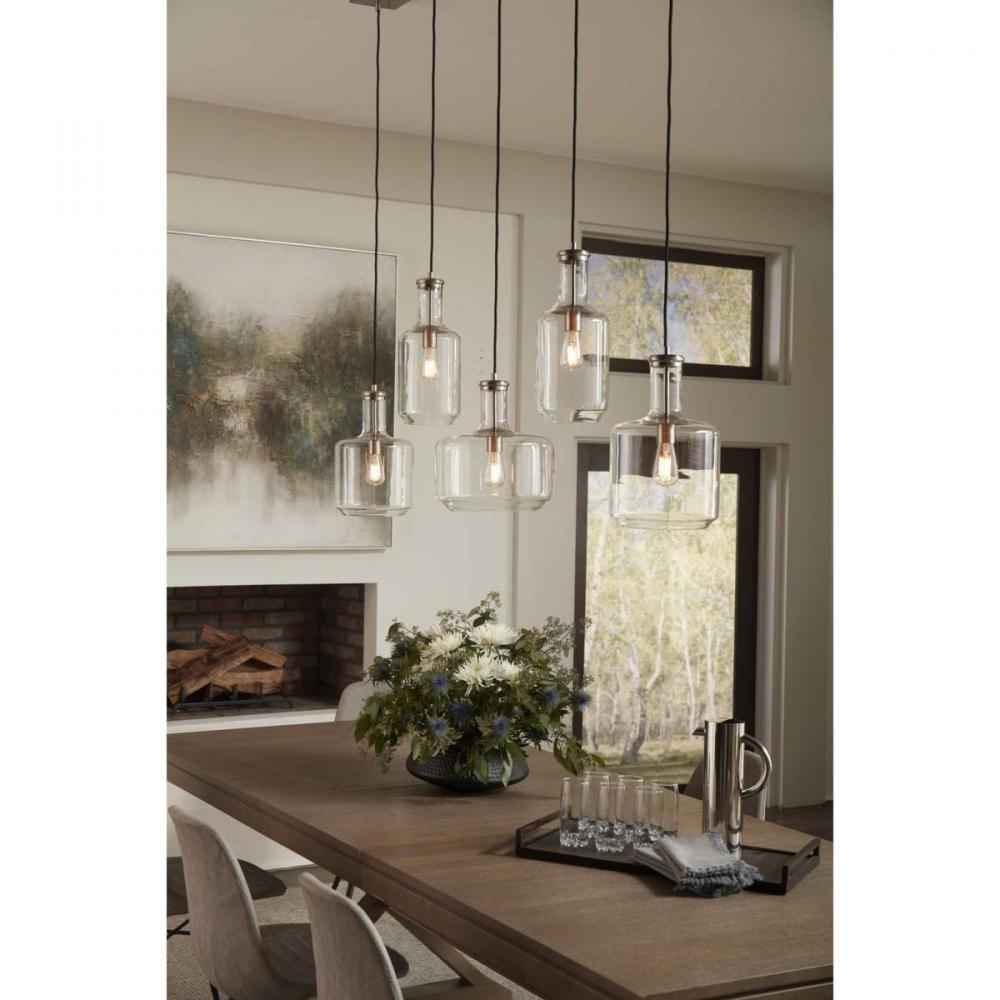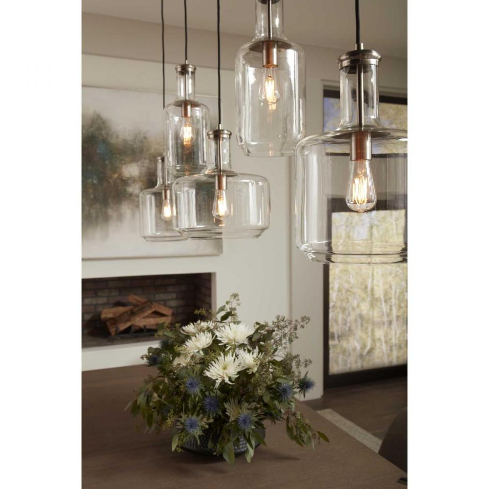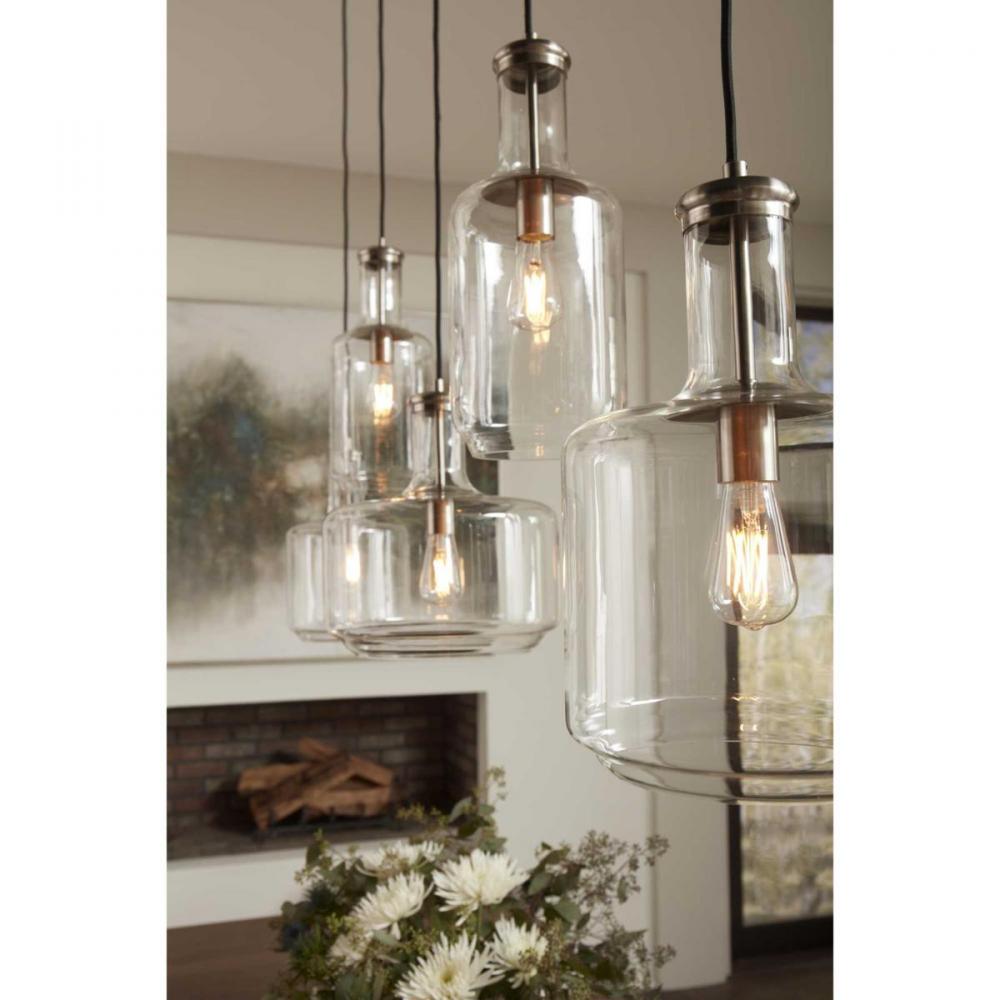 Introduce A Pop Of Personality Into Your Home With This Pendant. A Round Ceiling Plate Coated In A Brushed Nickel Finish Anchors The Pendant In Place As The Light Source Hangs Below. A Bottle-Inspired Clear Glass Shade Adds A Twist To A Simple Industrial Style That Brings This Light Fixture'S Vintage Charm To The Forefront Of Your Home'S Lighting Design.