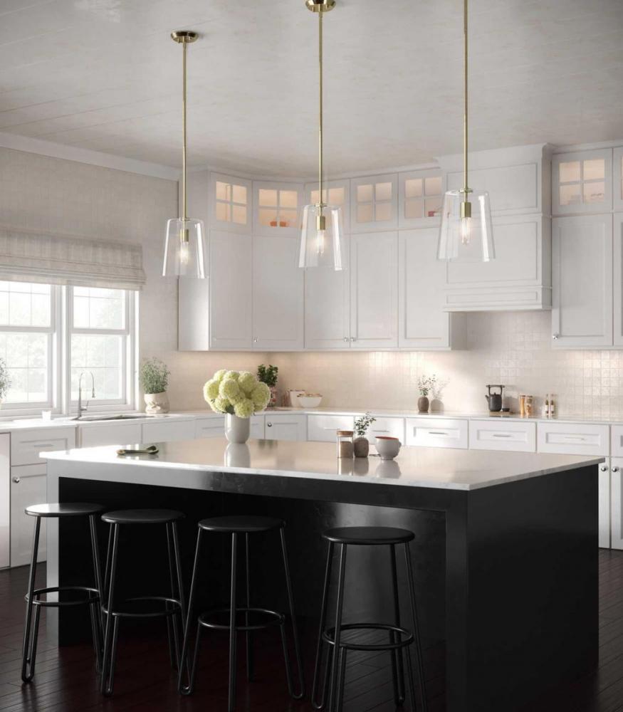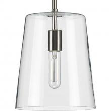 Elegant in its simplicity, the versatile Clarion pendant features a clear glass shade that embraces minimalist modernity and functional task lighting. The glass shade rests at the end of a sleek satin brass bar that attaches to the ceiling. Each light fixture has a swivel at its base that makes it perfect for installing on flat or angled ceilings.