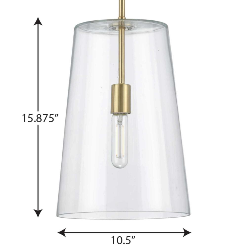 This versatile pendant features a simple, clear glass shade that embraces minimalist modernity and functional task lighting.;The glass shade rests at the end of a sleek satin brass bar that attaches to the ceiling.;Each light fixture has a swivel at its ba