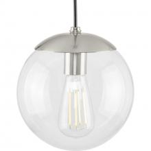 Embrace a statement-making lighting design with the Atwell Collection 1-Light Glass Globe Matte Black Modern Pendant Light. A light source glows from within a clear glass globe shade that fosters a soft and enduring design. The metal cap and light base are coated in a beautiful matte black finish that accentuates the hanging light's modern aesthetic.