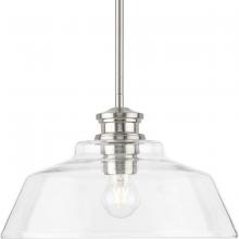 The Singleton Collection 1-light medium pendant pays homage to industrial styling with an oversized warehouse shade fabricated from clear glass. A round backplate and vintage-inspired metal fittings finished in classic matte black create a timeless design. The warehouse-style glass shade is the perfect showcase for clear decorative light bulbs (not included) to enhance the fixture's charming style. This beautiful pendant delivers optimal task lighting for breakfast nooks, kitchens, and bars.