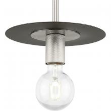 A flat disc shade and knurled detailing offer a prominent visual appeal to modern spaces