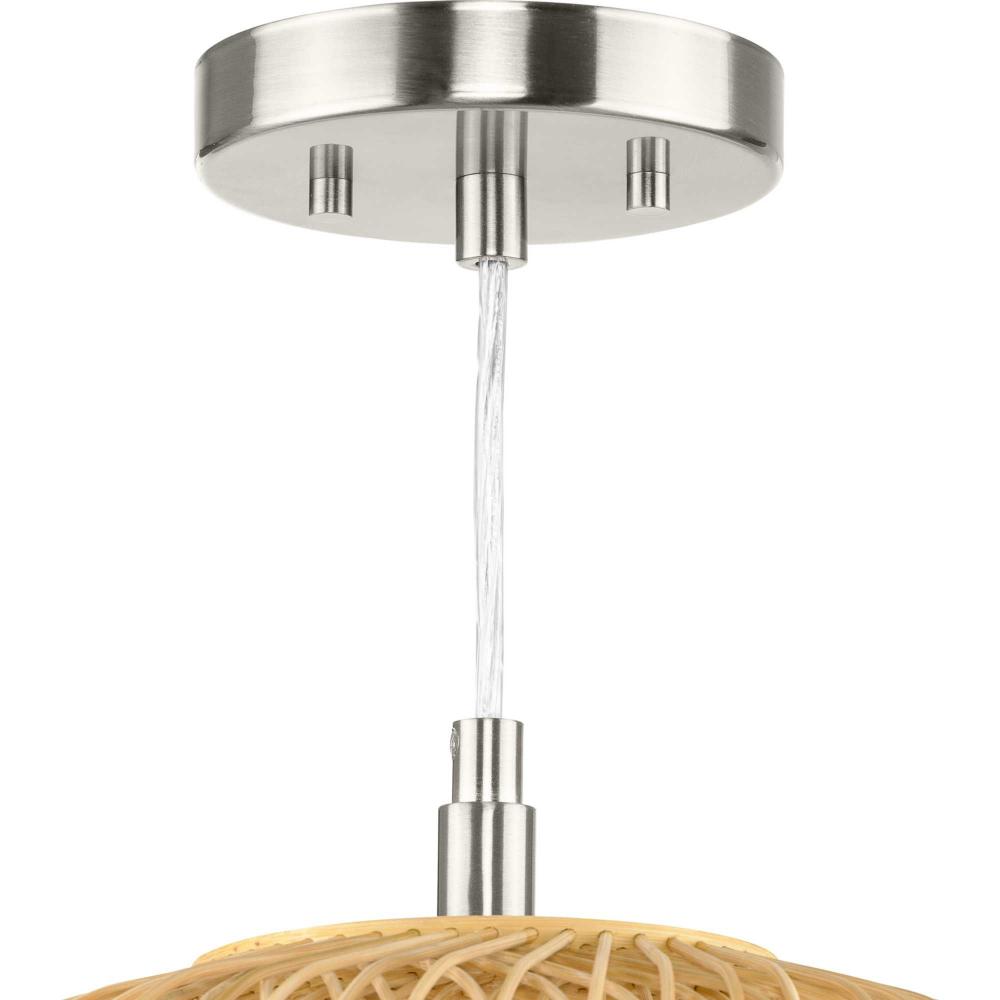 Handcrafted rattan shade is ideal to complement modern organic and globally influenced décor.