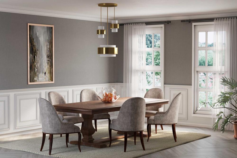 The fixture's sophisticated design elevates contemporary and luxe industrial settings
