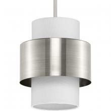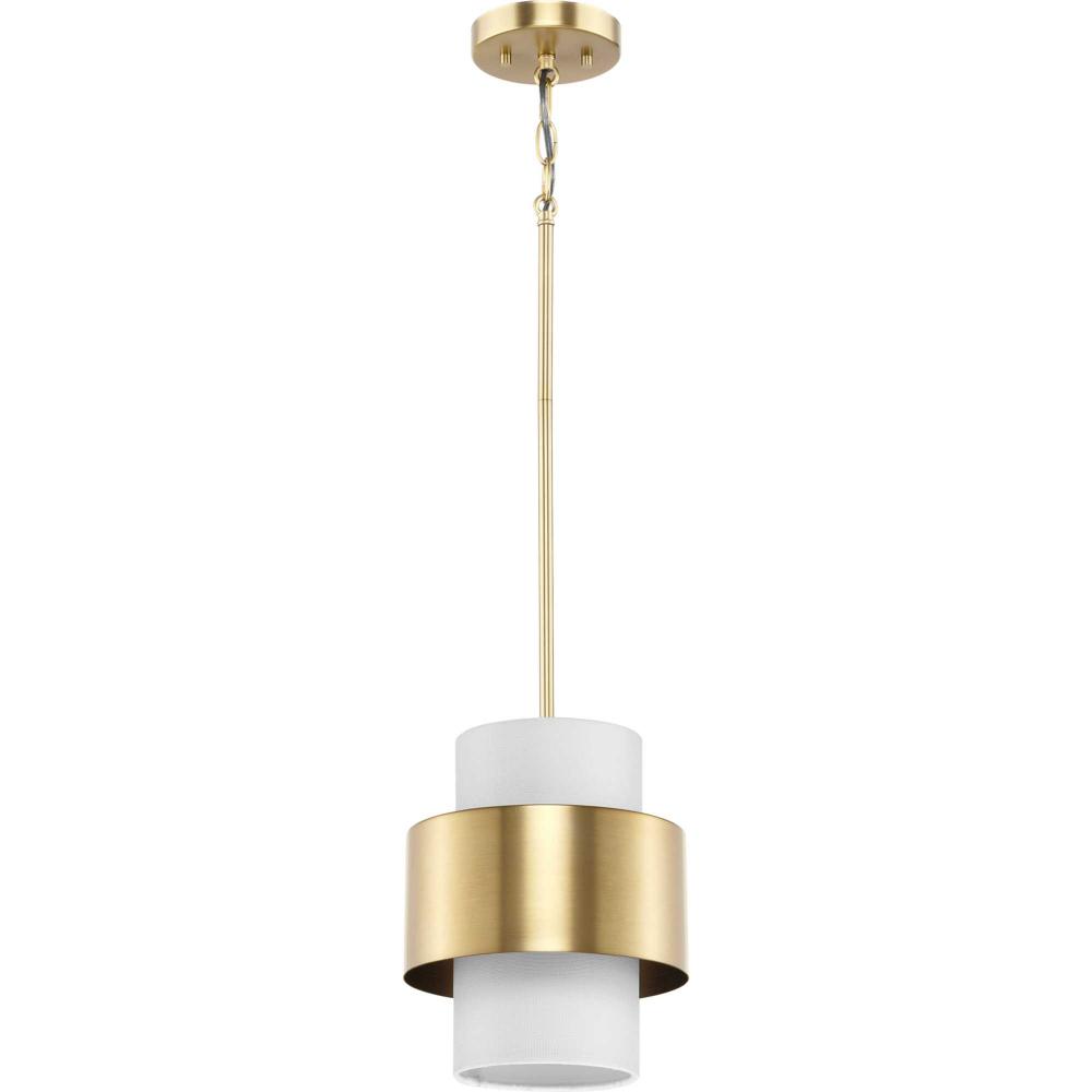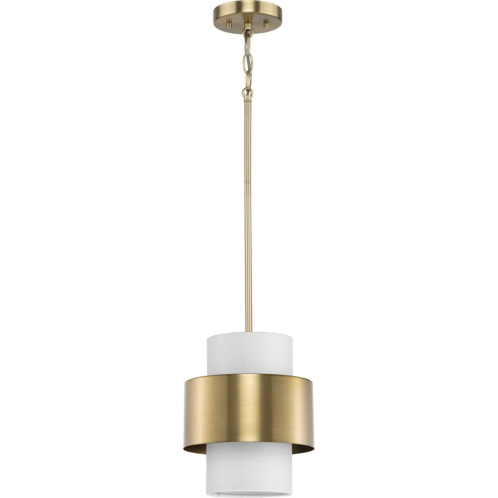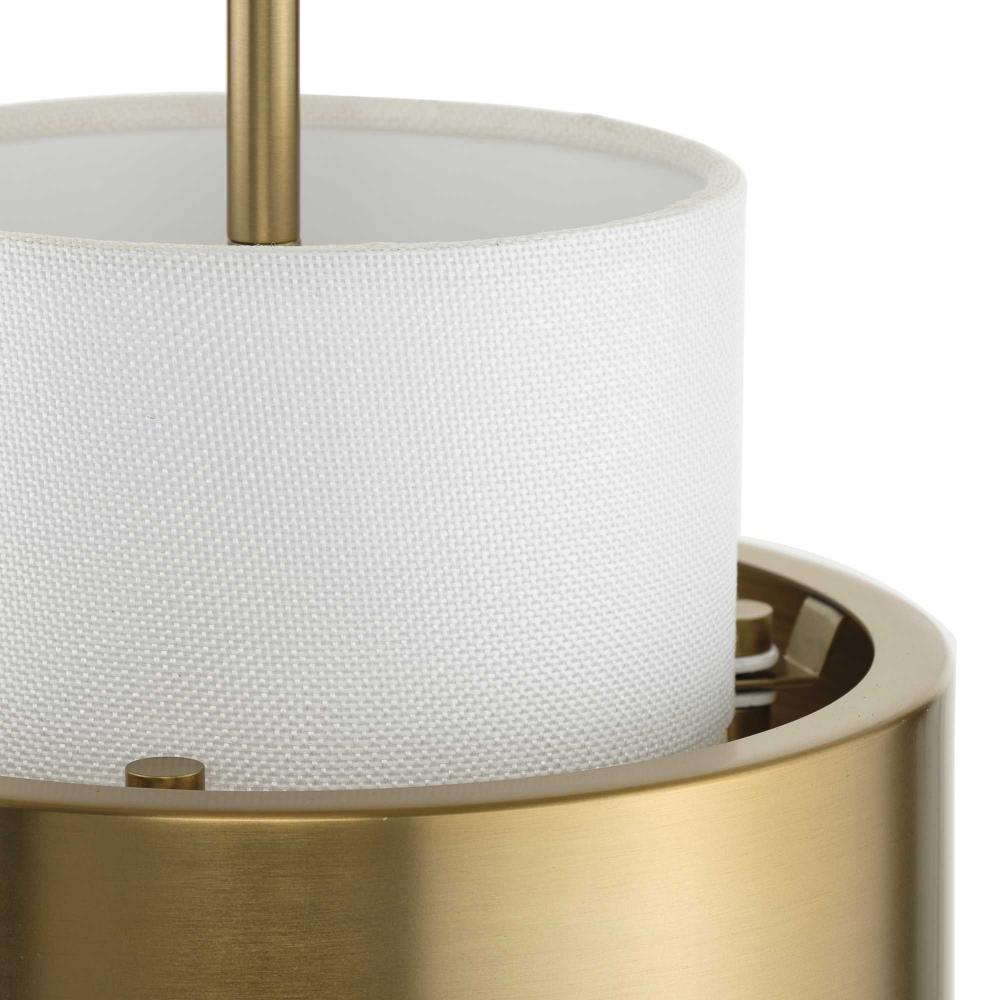 The Silva Collection uses a dramatic contrast of finish and material to present a captivating design. A white linen shade encompassed by a stunning metallic drum coated in a beautiful brushed bronze finish establishes a clean, modern, uplifting statement. This fixture is part of the Progress Lighting Design Series, a lighting collection offering fashionable styles and affordable luxury lighting for the home.