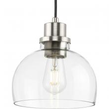 The clean lines of a domed glass diffuser topped with a vintage metal cap finished in beautiful brushed brass give a nostalgic look to the Garris Collection. A simple cord suspension and a clear glass shade offers a stylish modern touch to transitional and modern farmhouse interiors. Install singly or in multiples to provide crisp task illumination to kitchen islands, bars and bedrooms.