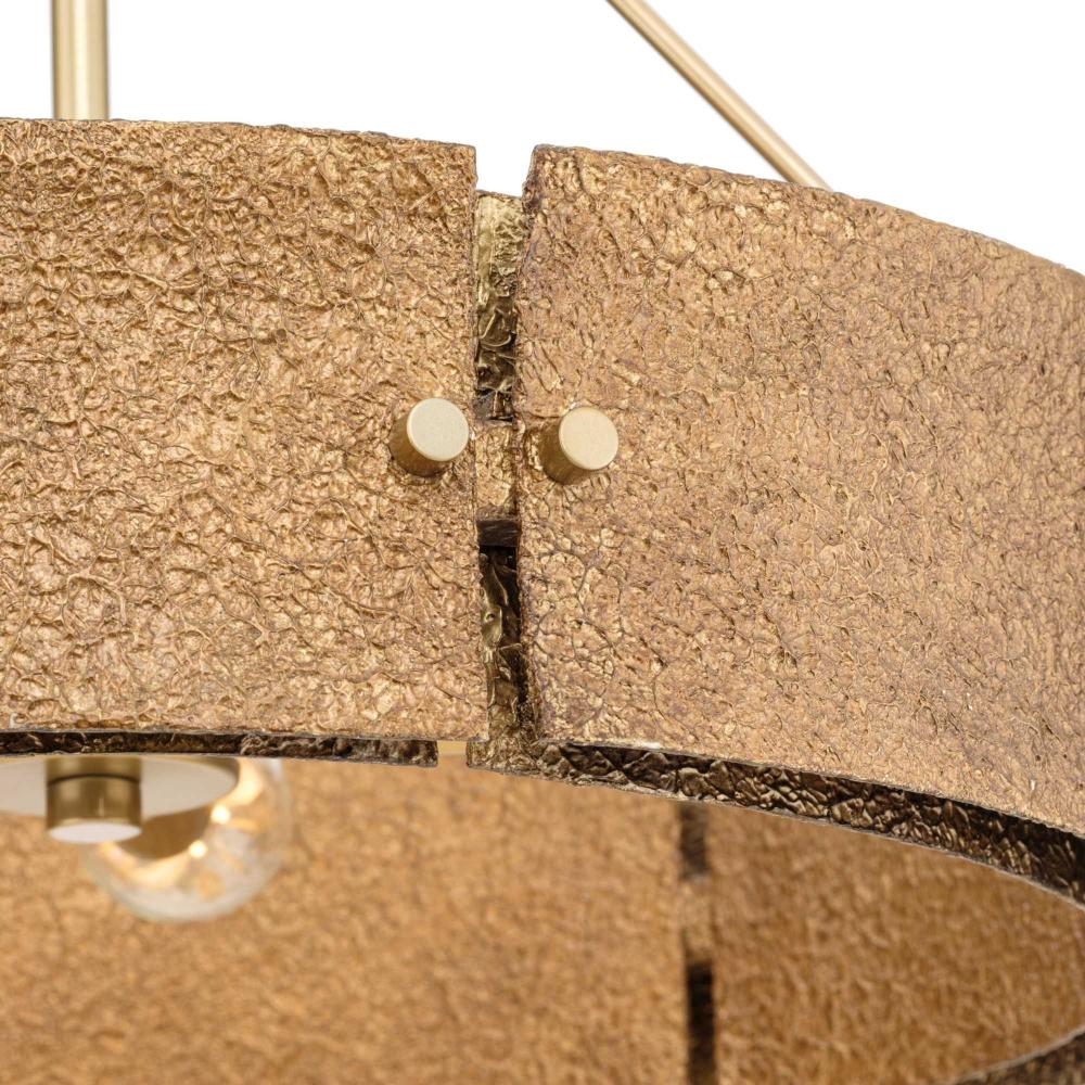 The light's artisanal, textured elements offer a vintage feel in contemporary rooms