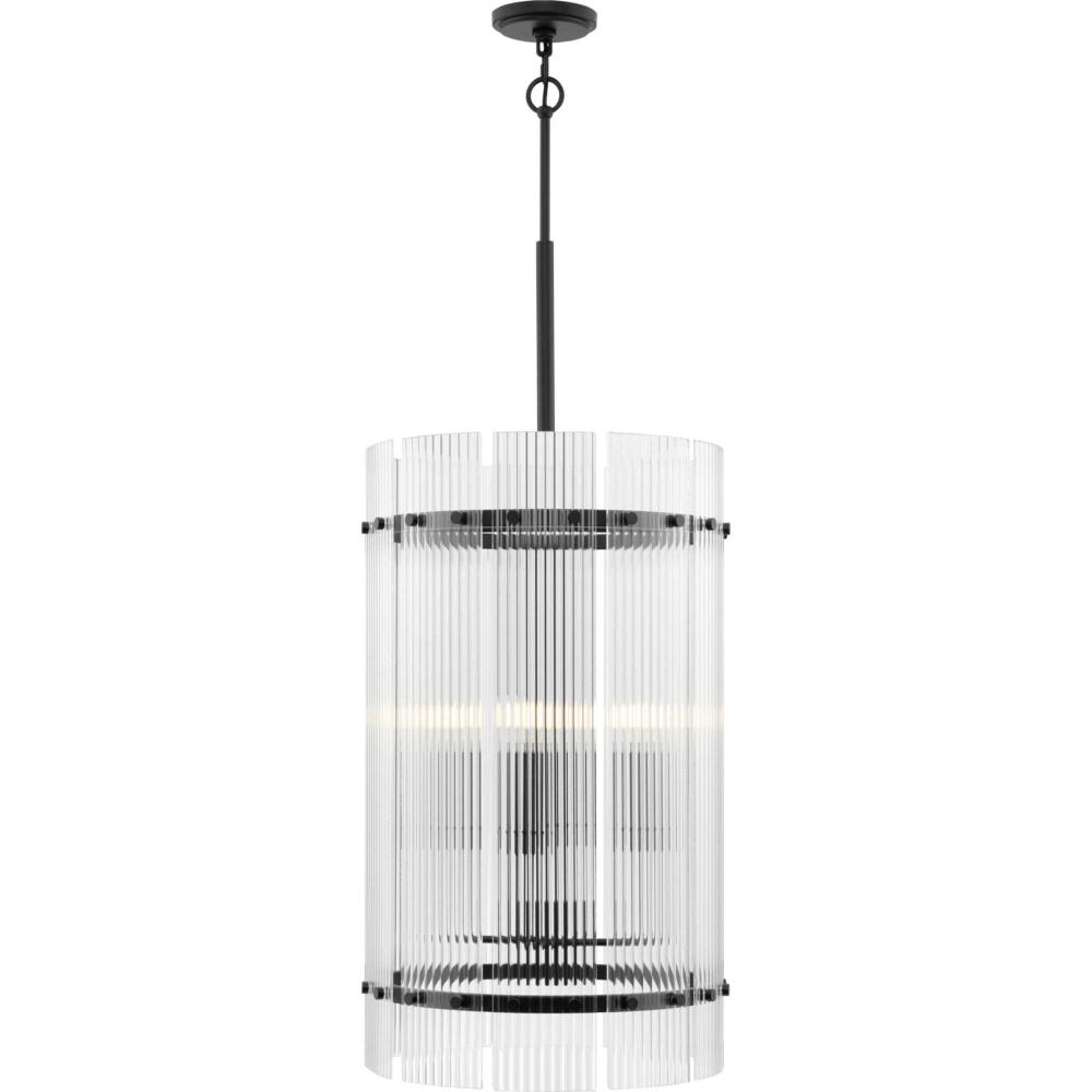 The Seville Collection ensconces light within a translucent design. A series of finely ridged architectural glass elements envelop a central frame finished in Matte Black to diffuse an ambient glow throughout the room. This fixture is part of the Progress Lighting Design Series, a lighting collection offering fashionable styles and luxury lighting for the home.