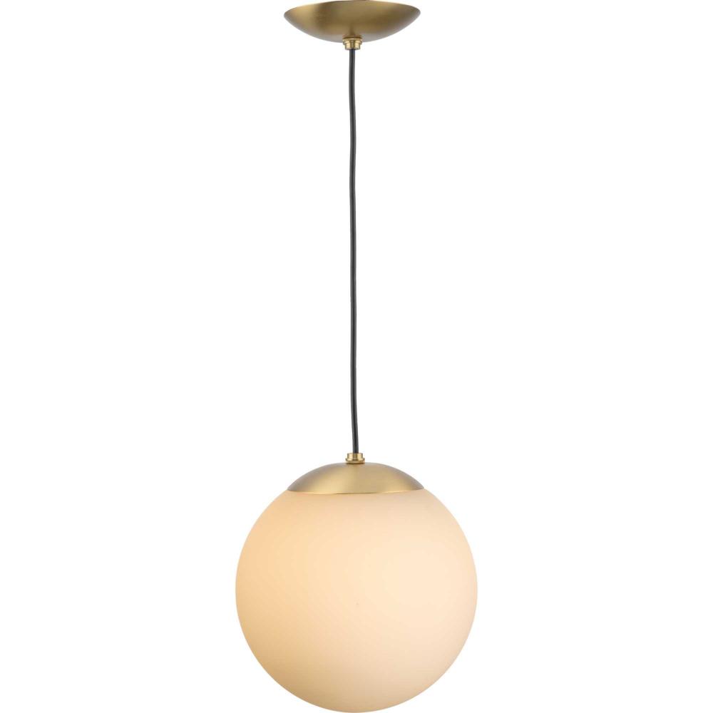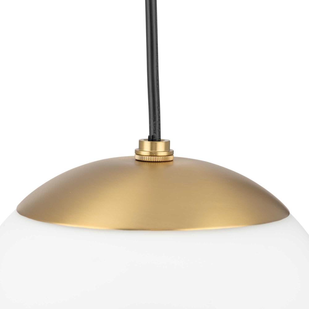 Embrace a statement-making lighting design with the Atwell Pendant Light. A light source glows from within an opal glass globe shade, fostering a soft and enduring design. The metal cap and light base are coated in a beautiful Brushed Bronze finish that accentuates the design's modern aesthetic. The light hangs from a flexible black cord that can be adjusted for height to meet your unique design needs.
