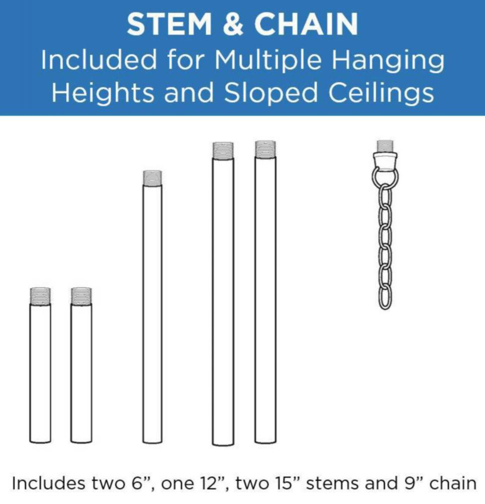 Brushed Nickel finish.;Fresnel glass lens.;Antique inspired with industrial roots;Includes two 6", one 12", two 15" stems and 6 links of chain.;Dimmable to 10% with many ELV dimmers;1,211 lumens 71.2 lumens/watt per module (source);3000K color
