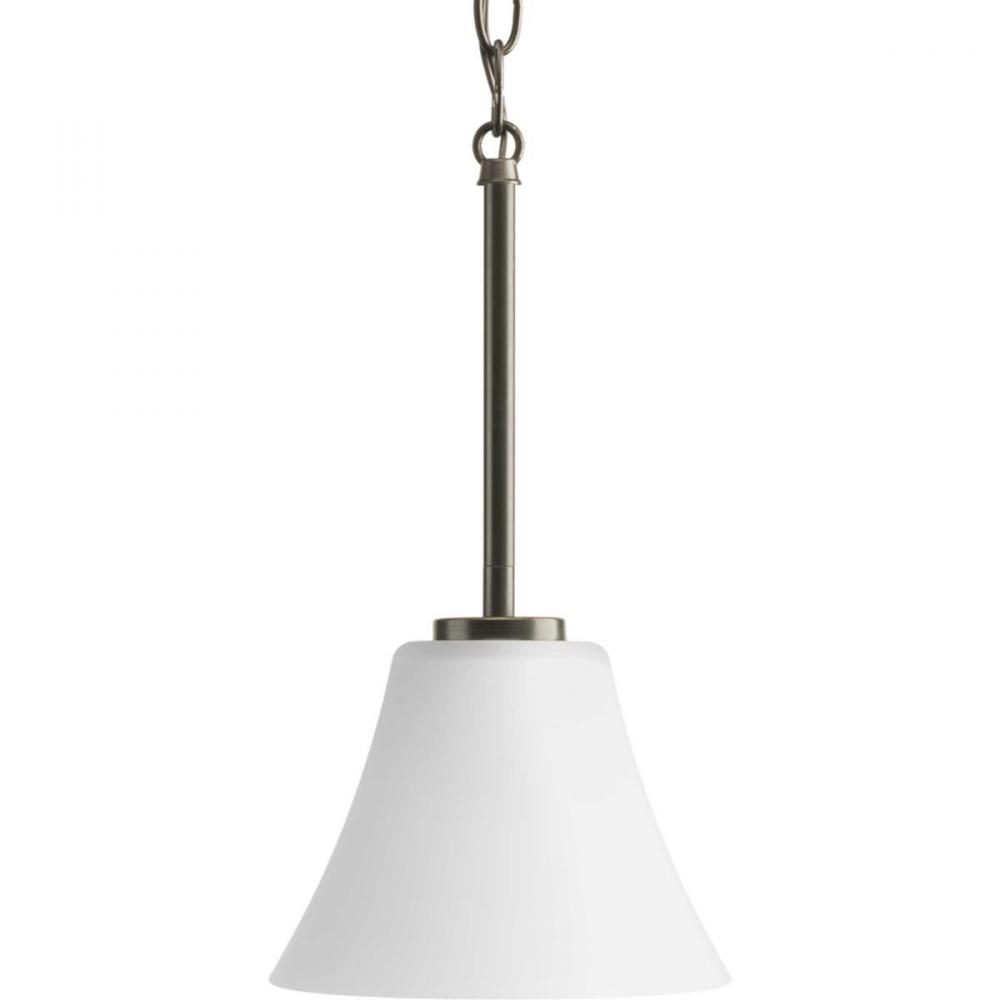 One-light mini-pendant finished in Antique Bronze with etched glass shades scaled across a slightly arching, pointed arm. Generously balanced glass shades add distinction and provide pleasing illumination to your room. Coordinating fixtures from this collection let you decorate an entire home with confidence and style.