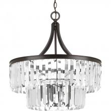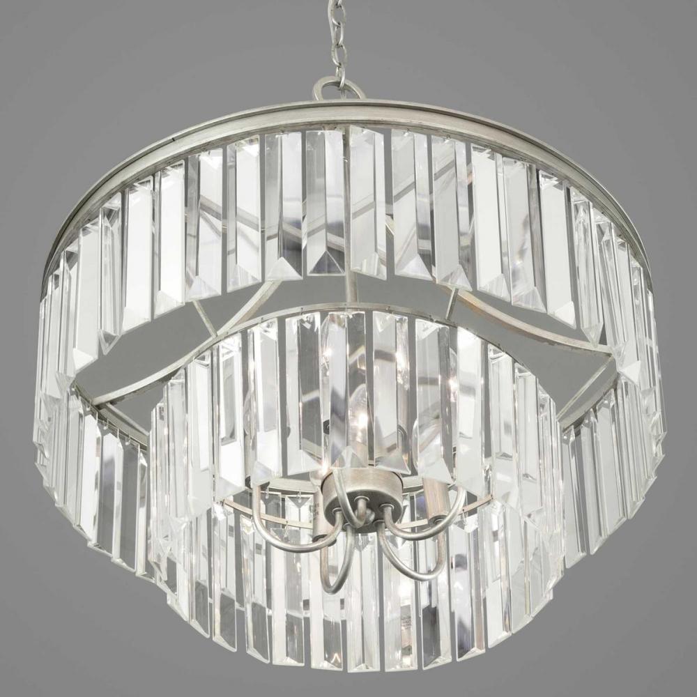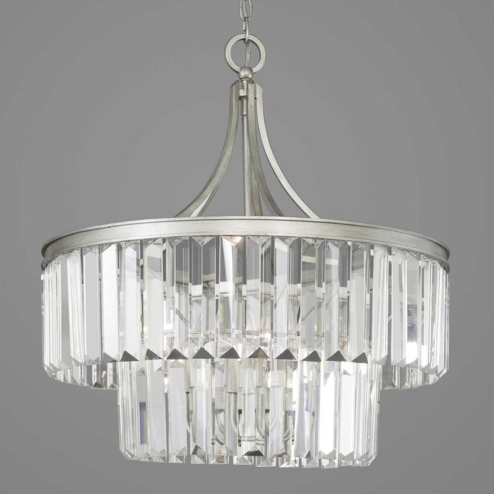 Elements that sparkle create an instant statement within the home.;Prismatic glass pendants offer a livable luxury feel.;Architecturally- styled frame in Silver Ridge finish.