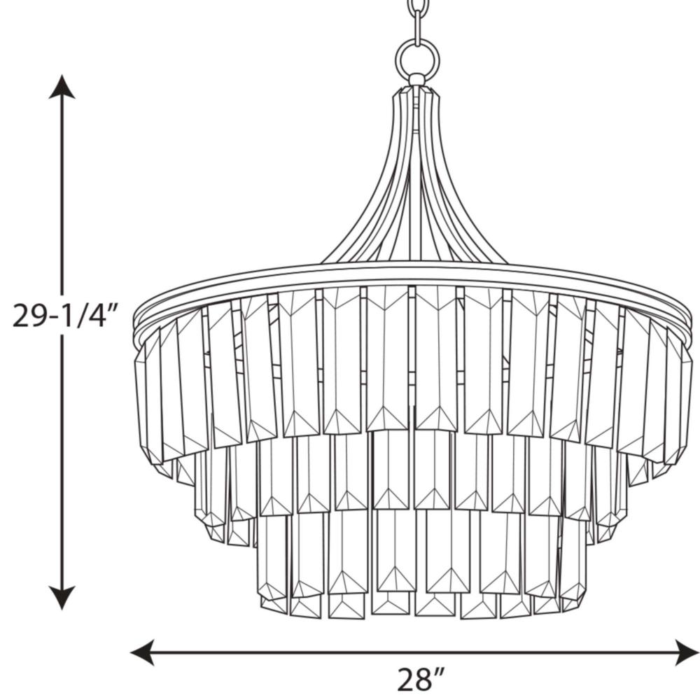 Glimmer fits the definition of livable luxury with elements that sparkle to create an instant statement within the home. Prismatic glass Prismatic glass six-light round pendant is supported by an architecturally- styled frame in Antique Bronze finish. The cascade of faceted linear glass deliver a sleek silhouette to any room.