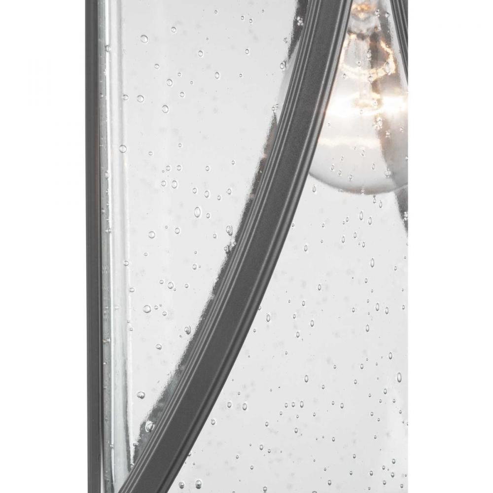 Clear seeded glass, heavy forged details and curving metal accents hearkens back to a Colonial era;The hanging lantern makes a distinguished greeting in a portico, over an entry door, or placed along the roof of a porch or veranda;The classic lines and swe