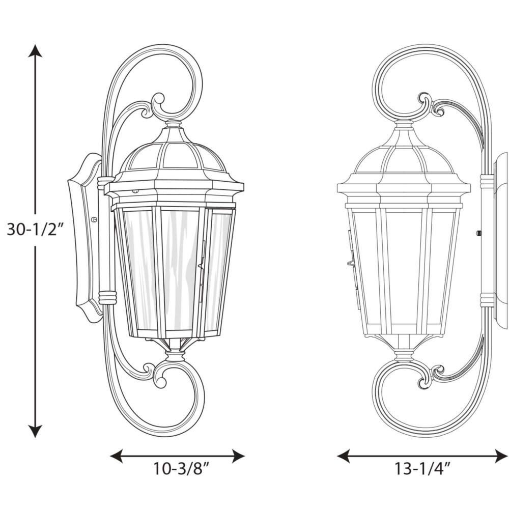 The three-light wall lantern in the Verdae collection offers traditional styling for a variety of exteriors. Classic and formal clear seeded glass complements a Black finish. Hinged door for easy access to replace lamps.