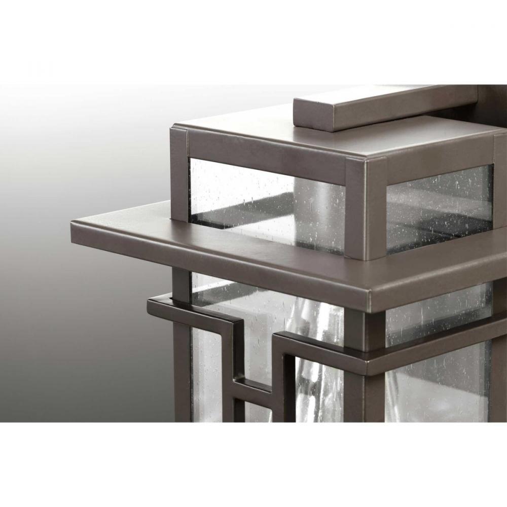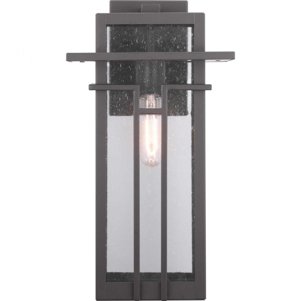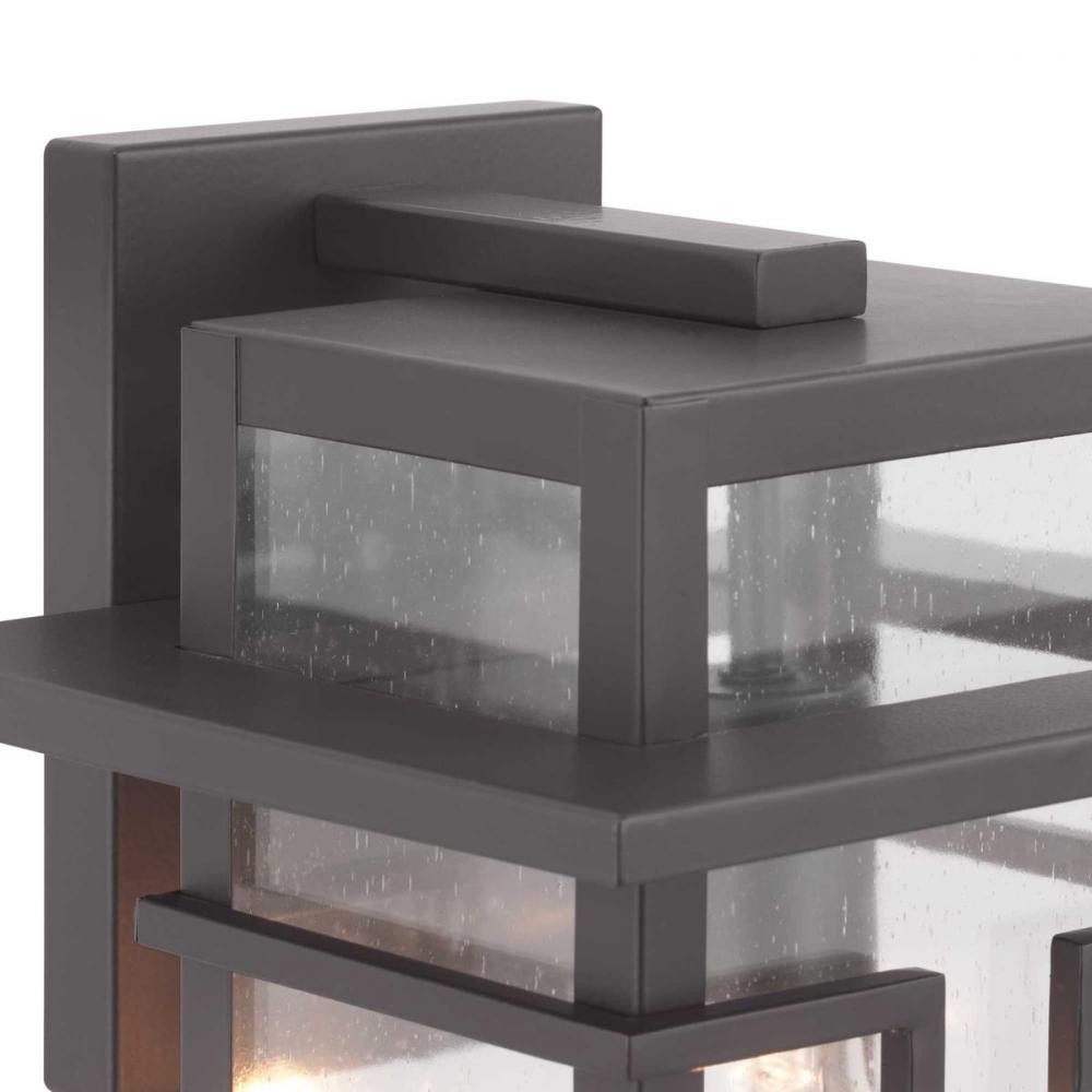 Geometric details in Boxwood’s design enhance Craftsman-inspired architecture. The one-light large wall lantern features clear seeded glass and finished in Antique Bronze which completes the authentic style.