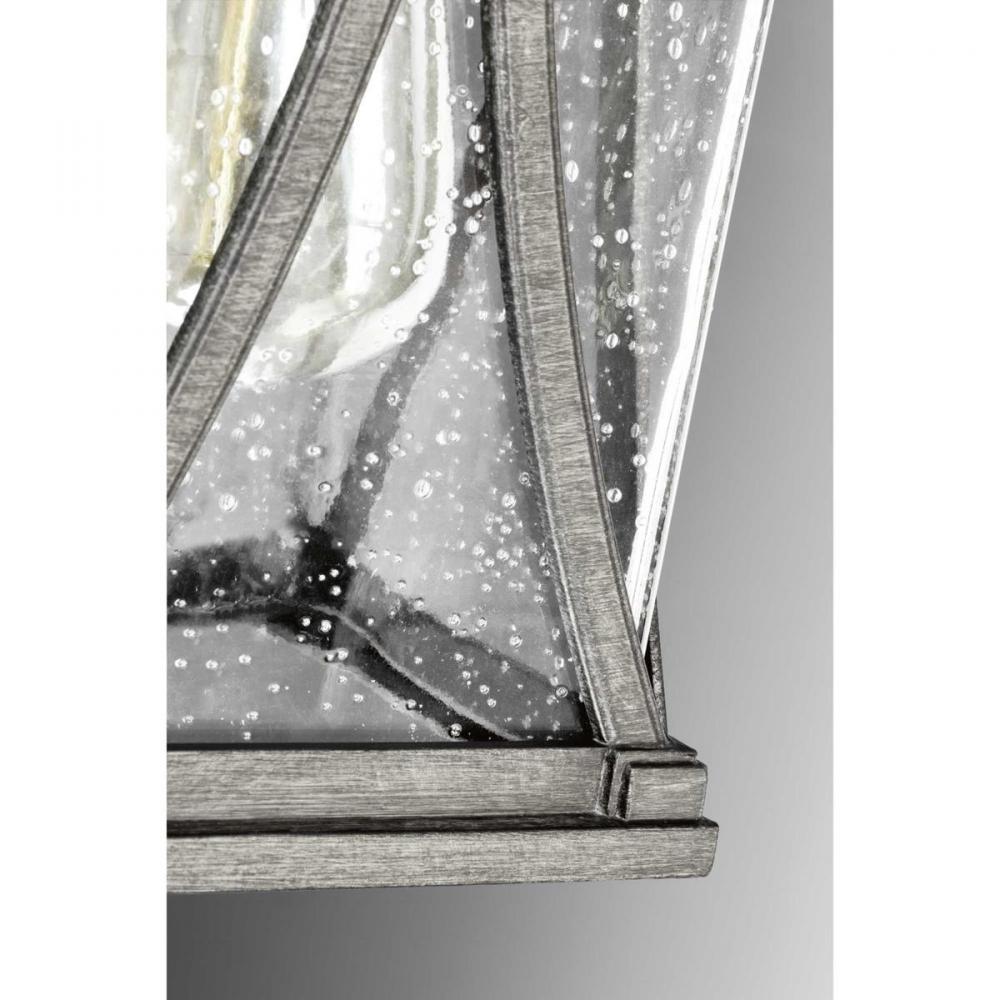 Distinctive forms with ancient roots are featured in this medium wall lantern from the Abbott Collection. Transparency, depth and dimension are all on display to highlight the clear seeded glass and sweeping details within the Antique Pewter frame.