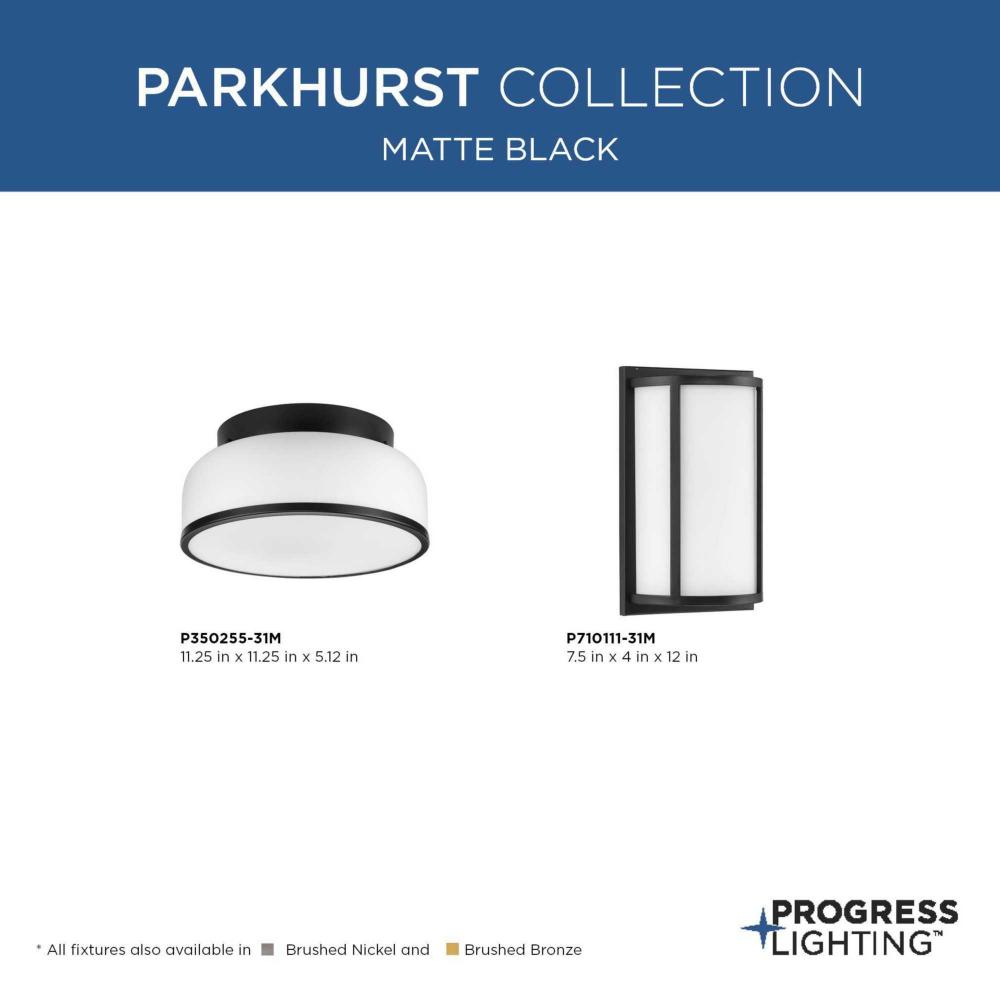 Graceful curves and bold angles combine to create a softly structured look in Parkhurst. An airy frame coated in crisp matte black defines the form and delivers unobstructed layers of light though etched glass shades. The visual appeal of the wall sconce will offer a subtle and elegant silhouette over home theaters, bathrooms, or bedrooms in new traditional and contemporary interiors.