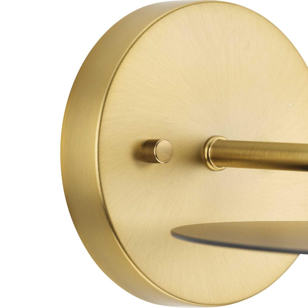 The fixture's dual-toned finish features a pairing of golden brushed bronze and matte black discs