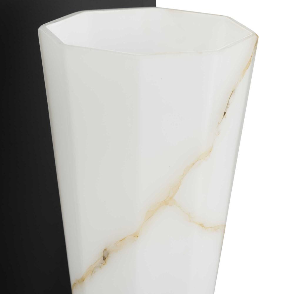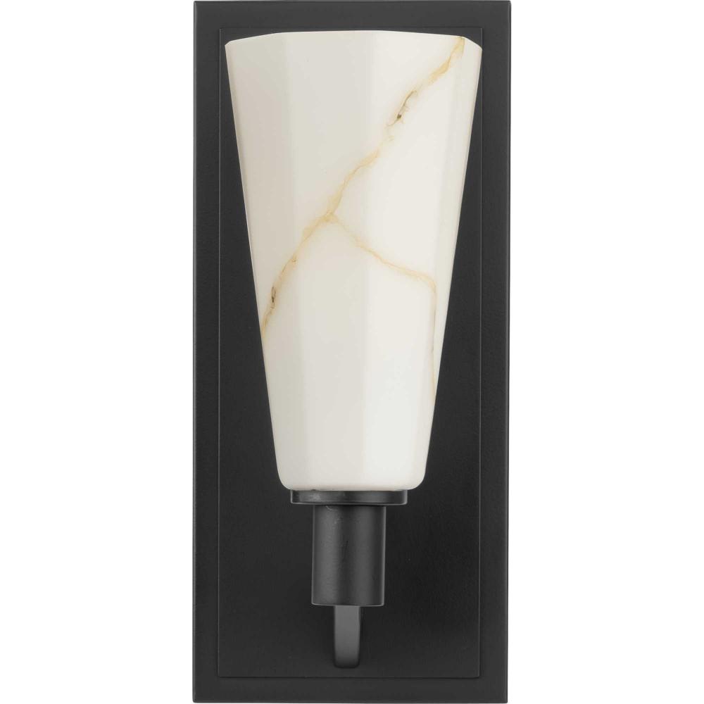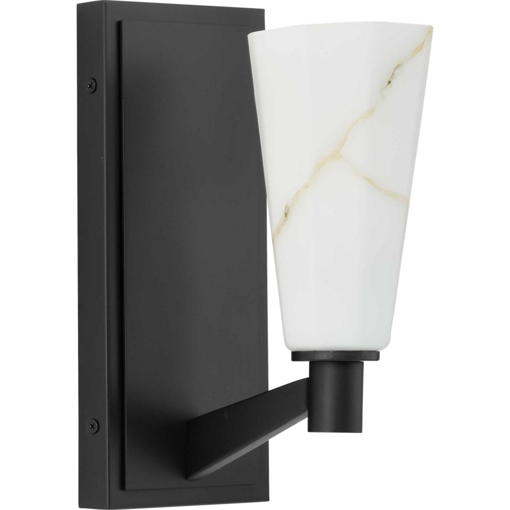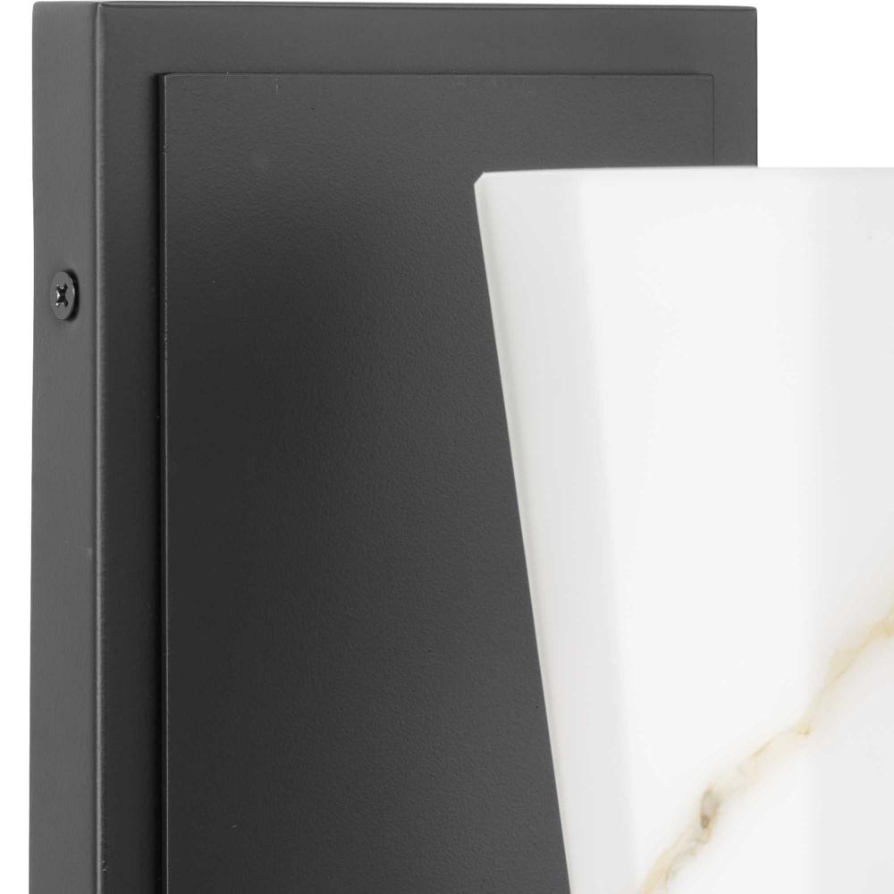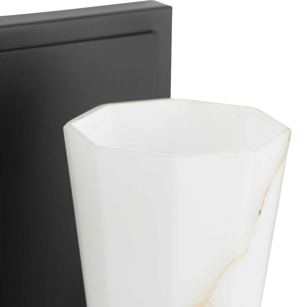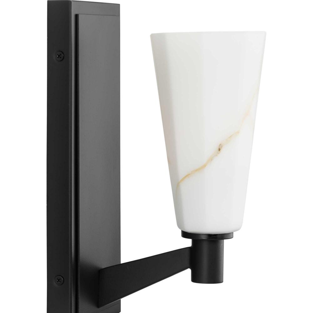 The Tosca Collection exudes a sense of motion from a gracefully tapered arm that transcends traditional design boundaries. The Matte Black wall light holds a geometric glass shade crafted with a faux alabaster finish that radiates patterns of light and shadow, adding depth and warmth that enchant any room. This fixture is part of the Progress Lighting Design Series, a lighting collection offering fashionable styles and luxury lighting for the home.