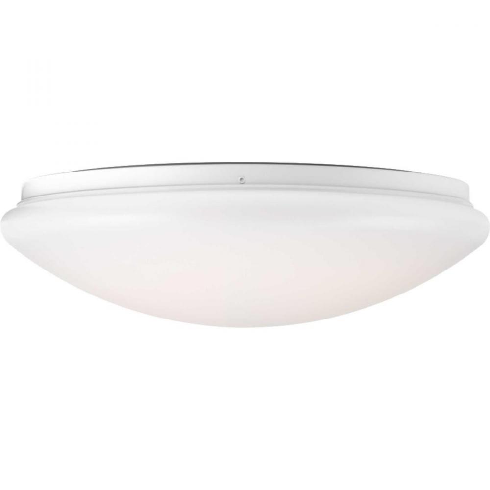 White acrylic diffuser;Twist on installation.;Wall or ceiling mount;White finish;1845 lumens, 82/lumens per watt (delivered);3000K color temperature, 90+ CRI;Damp location listed;Dimmable to 10% with many Forward Phase (Triac) or Electronic Low Voltage (EL