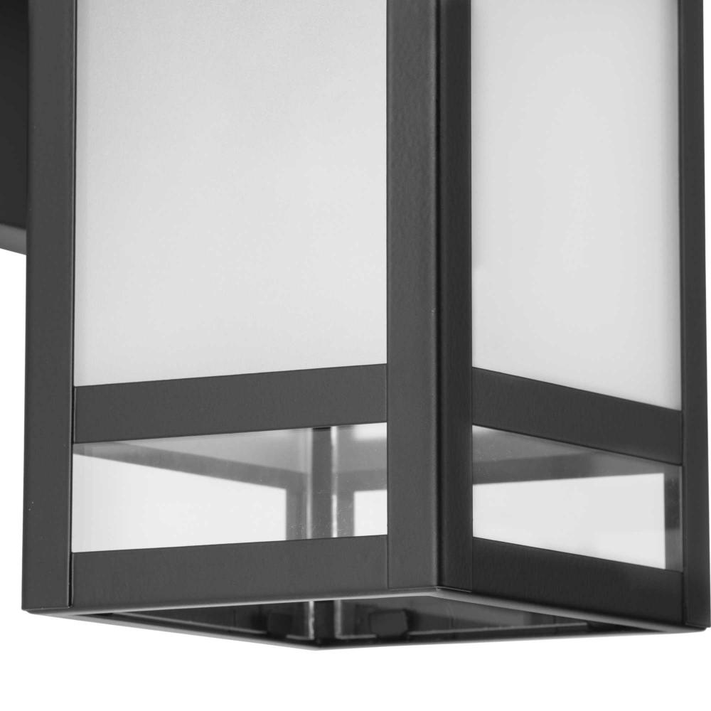The Parrish Collection combines classic style with minimalist geometry to impart a modern appeal to outdoor settings in transitional and modern craftsman style homes. This wall lantern features a sturdy, rectangular frame coated in crisp matte black and casts light through etched and clear glass panels, offering distinctive accents and softened illumination. It is cULus wet location listed for use where water may be present, with a one-year warranty to guarantee your complete satisfaction. Progress Lighting products are designed for exceptional quality, reliability, and functionality.