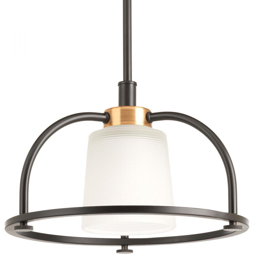 A modern form with industrial-inspired accents are featured in West Village. Double prismatic glass shades provide a beautiful illumination effect. Visual interest continues with a three-spoke design that holds each glass shade. Antique Bronze with Antique Brass accents provide touches of mixed metal. The one-light semi-flush convertible can be or chain hung semi-flush to ceiling. This fixture is part of our Design Series collections.