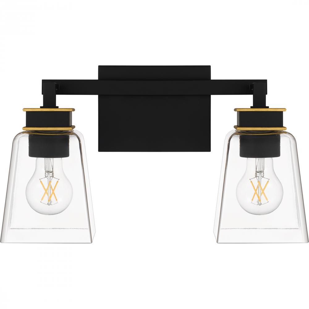 With a sleek matte black finish and gold accents, Almany bath lights make a modern statement over any vanity. The clear glass shades maximize radiance and showcase the bulbs of your choice, while aged brass accents add a touch of glam detail . This versati