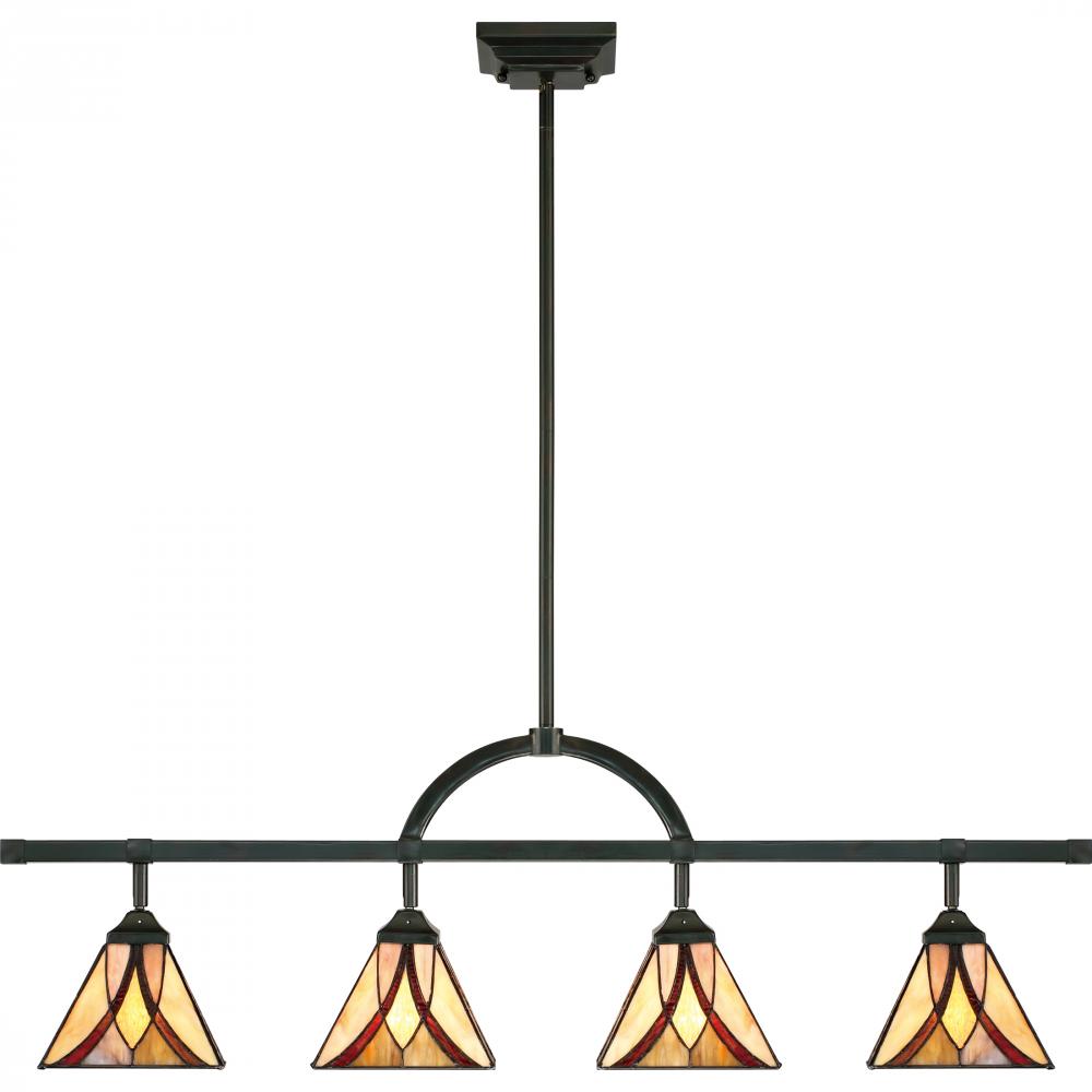 Gentle scrollwork and Tiffany style in a classic pattern brings sophistication to the Asheville Collection. The Tiffany glass is hand assembled using the copper foil method developed by Louis Comfort Tiffany. The Valiant Bronze finish anchors the traditi