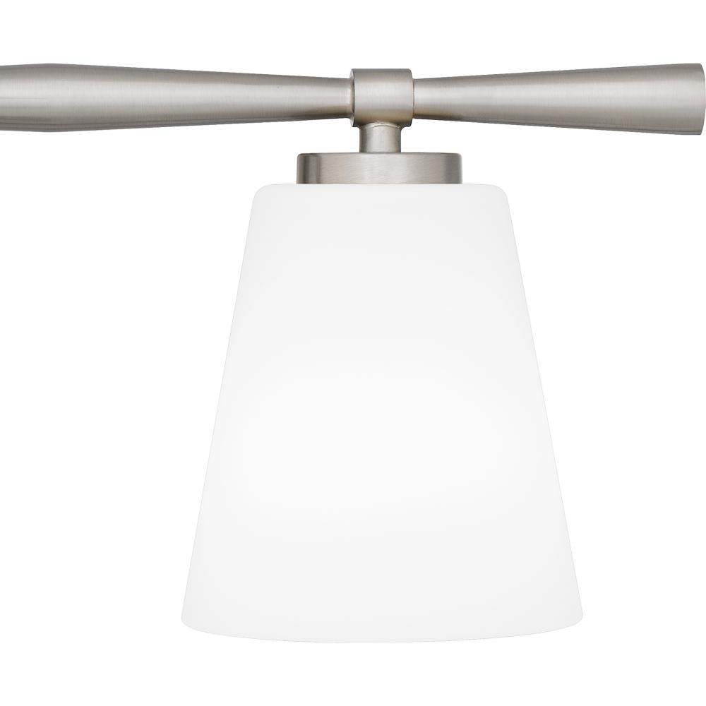 With geometric lines and a slim silhouette, Brindley bath lights draw inspiration from mid-century design. Opal etched glass shades soften the light, creating a warm spa-like glow. Brindley is available in multiple size options and your choice of brushed n
