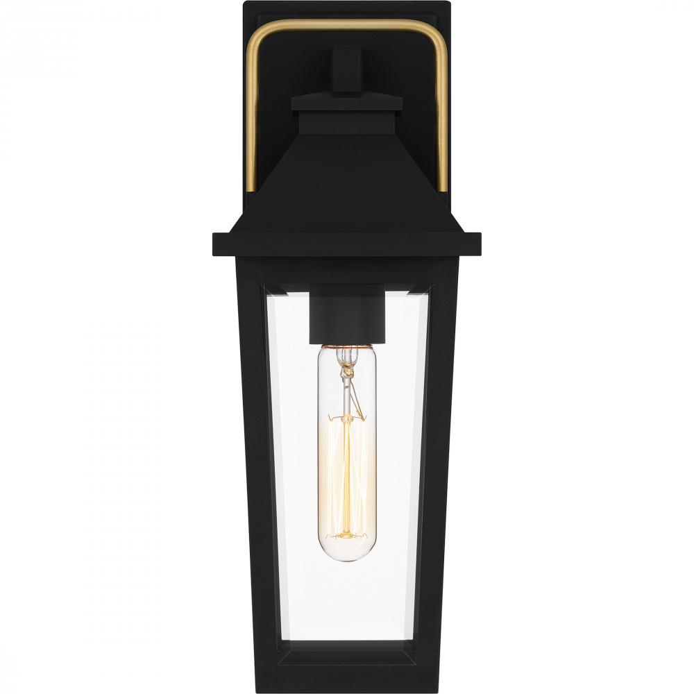 Buckley outdoor lanterns showcase classic design elements paired with industrial style gold accents. A sturdy matte black frame is accentuated by clear beveled glass panels for a classic look that is designed to withstand the elements. As part of our Coast