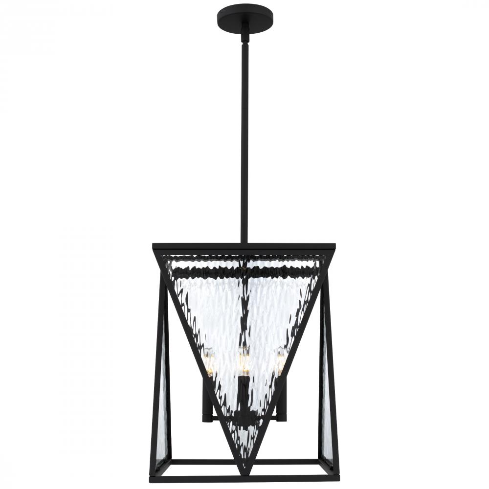 Sculptural and softly luminous, the Clovis Pendant Light blends classic charm with a modern edge. Its bold geometric frame—available in brushed weathered brass or matte black—cradles panels of clear water glass that ripple with movement, casting a glow